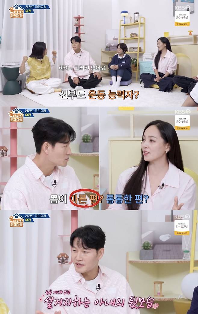 25일 방송된 KBS2 '옥탑방의 문제아들'에는 S.E.S 출신 유진이 게스트로 출연했다. 이날 MC들은 김종국의 신혼 생활을 궁금해했다.