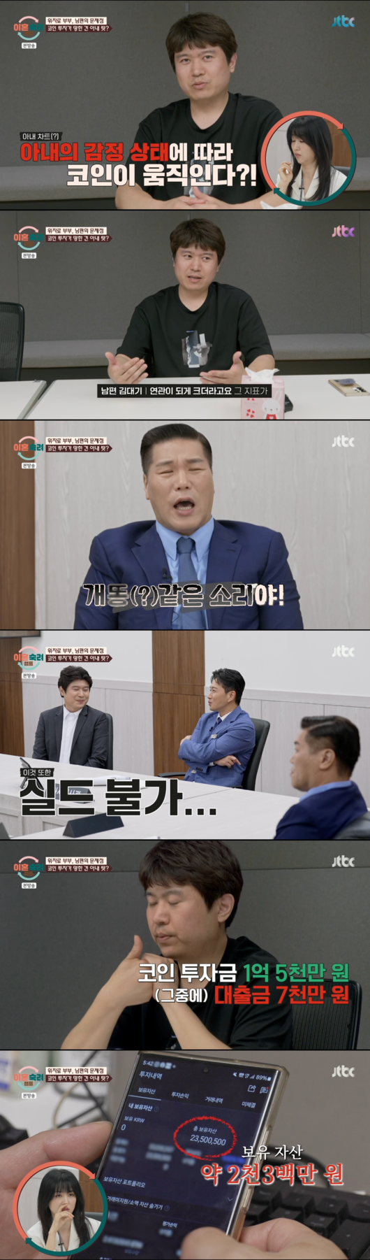 '이혼숙려캠프' 남편이 아내 몰래 억대 코인 투자를 했다가 큰 손실을 보고도 모든 책임을 아내에게 돌렸다.