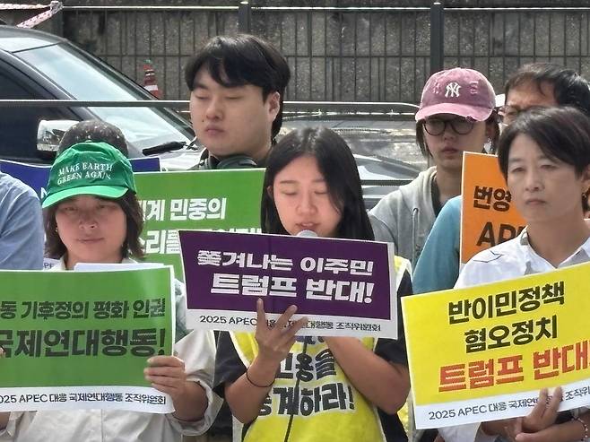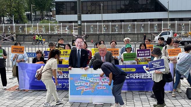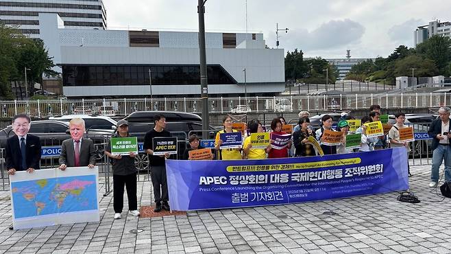 25일 오전 11시 용산 대통령실 앞에서 2025 APEC 반대 국제민중행동 조직위원회가 출범 기자회견을 열었다.