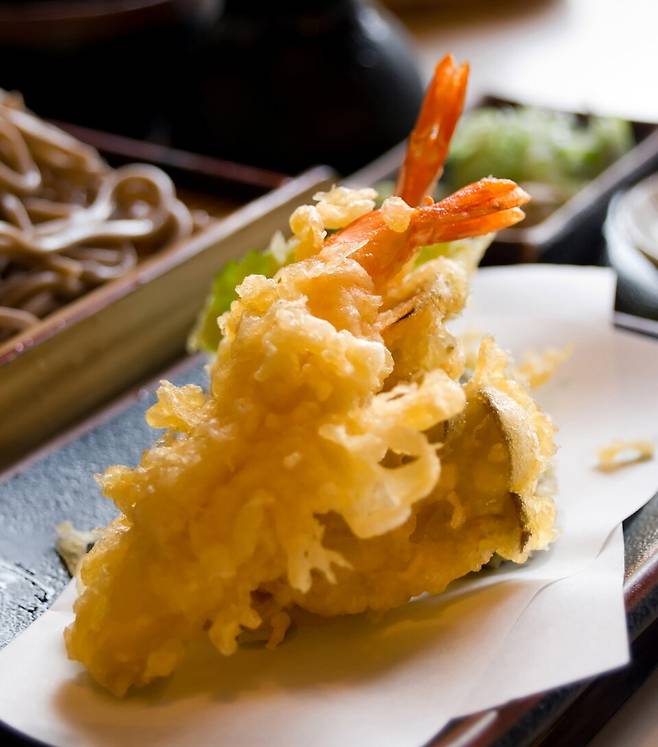 깨끗한 기름에서 막 건져 올린 덴푸라. 젓가락 끝에 스치기만 해도 바스러질 듯 가볍고, 한입 베어 물면 고소한 튀김옷 아래 촉촉한 속살이 드러난다. 기름에 튀겼지만 의외로 담백해 끝까지 질리지 않고 즐길 수 있는 것도 덴푸라만의 매력이다.