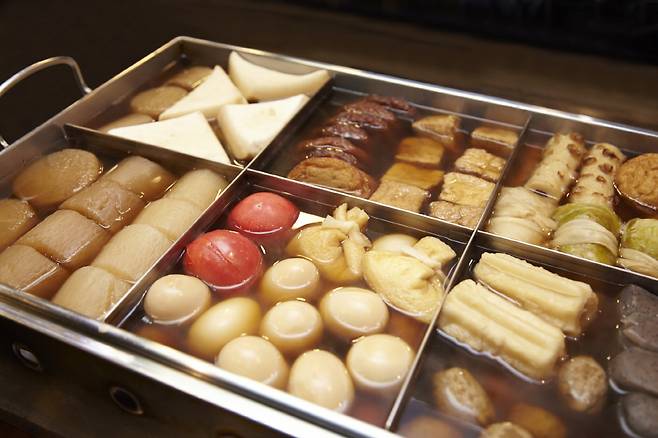 김이 모락모락 피어오르는 국물 향만으로도 발걸음을 멈추게 하는 오뎅. 일본 겨울 거리를 걷다 보면 커다란 솥 속에서 무, 달걀, 어묵, 곤약이 은근하게 익어 가며 깊은 향을 퍼뜨린다.