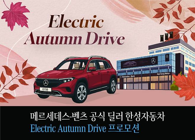 메르세데스-벤츠 공식 딜러 한성자동차는 가을 시즌을 맞아 전기차 고객 대상 ‘전기차로 떠나는 가을 드라이브'를 진행한다고 26일 밝혔다. 이번 프로모션은 이날부터 30일까지 5일간 전국 한성자동차 전시장에서 진행되며, 전기차 시승 고객과 계약·출고 고객을 대상으로 특별 사은품이 제공된다.