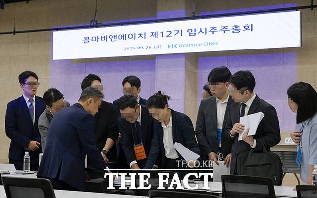 경영권 분쟁 속 진행된 '콜마비앤에이치 임시주총' [TF사진관]