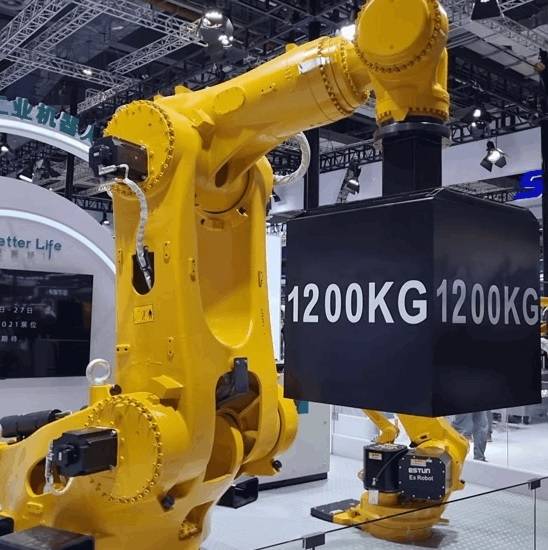 ![중국 산업로봇 2위 업체 이스툰이 선보인 다관절 로봇팔 ‘ER1200-3300’이 1200kg의 무게 추를 들어올리고 있다. 불과 5초 사이에 1200㎏나 되는 물건을 약 2m 정도 들어 올린 뒤 흔들림 없이 오른쪽으로 2m 정도 옮겼다. [김영철 기자]](https://t1.daumcdn.net/news/202509/29/ned/20250929102602045vbie.gif)