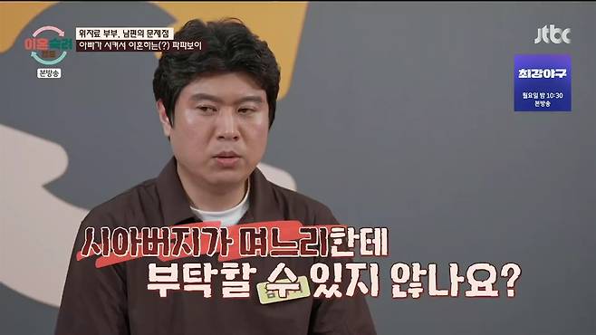 아내는 "저희 둘이 사이가 안좋아서 이혼하는 입장은 아니니까, 시아버님이랑 문제도 좋게 해결했다면 이렇게 안좋아지지 않았을 텐데, 어떻게 해야할지 모르겠다"며 눈시울을 붉혔다.