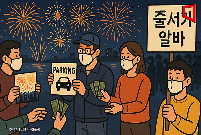 불꽃축제 '명당 거래' 기승…주차권 팔고, '줄서기 알바'까지