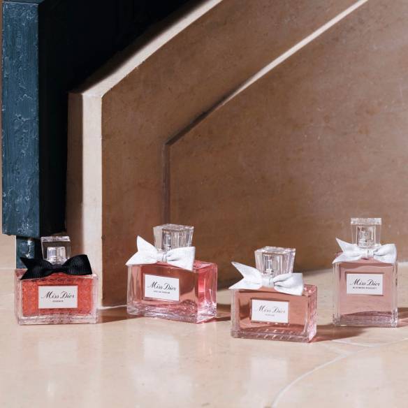 (왼쪽부터)미스 디올 에쌍스, 미스 디올 오 드 퍼퓸, 미스 디올 퍼퓸, 미스 디올 블루밍 부케 오 드 뚜왈렛, 모두 Dior Beauty.