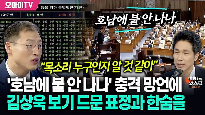 | ▲ 김상욱 더불어민주당 의원은 26일 오마이TV <박정호의 핫스팟>에 출연해 전날 국회 본회의장에서 오마이TV가 단독 포착한 '호남에 불 안 나나' 발언에 대해 분석했다. |
