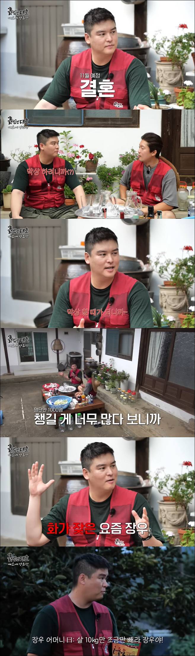 담금주를 함께 담그기로 한 이장우와 김대호. 김대호는 이장우에게 현재 고민에 대해 물었고 이장우는 결혼을 꼽았다. 이장우는 "막상 하려니까"라고 얘기하다 "정신이 나갔네. '막상 하려니까'가 아니고 막상 할 때가 되니까 이 사람 챙기고 저 사람 챙기고 (하객) 명단이 1000명씩 되는데 화가 난다"고 현실적인 고민을 털어놨다.