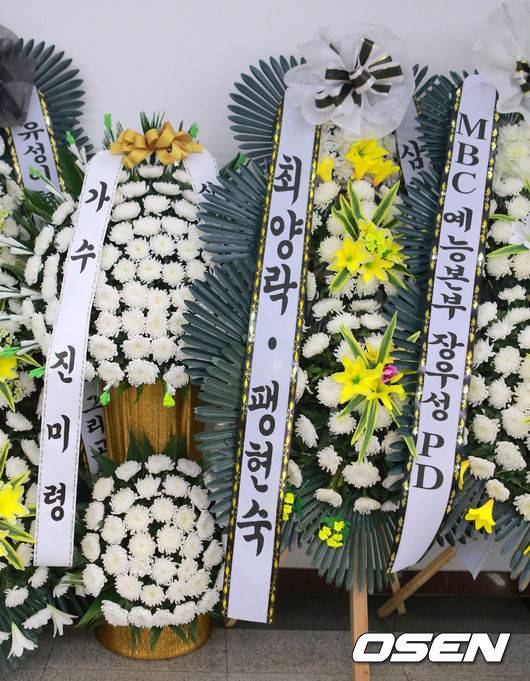 진미령이 보낸 근조화환에는 '삼가 고인의 명복을 빕니다'는 문구가 적혀 있다.
