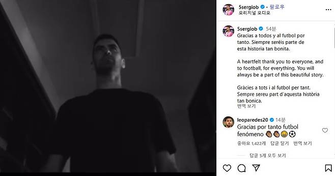 부스케츠는 26일(한국시간) 자신의 SNS에 "모두에게, 그리고 축구에게 진심으로 감사를 전한다. 여러분은 항상 이 아름다운 이야기 속의 일부로 남을 것이다"라고 전하며 감사의 마음을 전하는 동영상을 함께 게시했다.