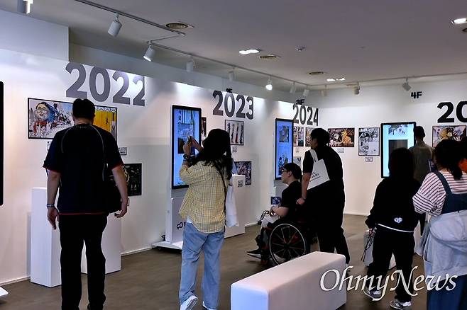 친구와 함께 수상작들을 관람하던 김아무개(50대 여성)씨는 "정치적인 성향을 떠나 만화를 통한 풍자는 예전부터 있었다. 그때 문체부(문화체육관광부)의 조치는 너무했다"며 "(이번에) 다시 전시한 건 잘했다고 생각한다"라고 말했다.
