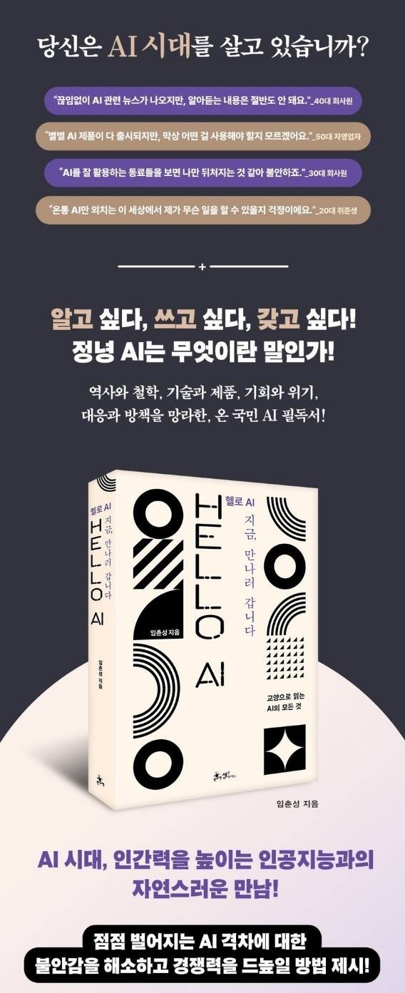 "AI에 관한 뉴스는 쏟아지지만, 정작 우리가 알아야 할 본질은 잘 다뤄지지 않습니다" 연세대학교 공학대학원장 임춘성 교수가 최근 출간한 신간 《HELLO AI: 지금, 만나러 갑니다》(쌤앤파커스)에서 던진 메시지다.