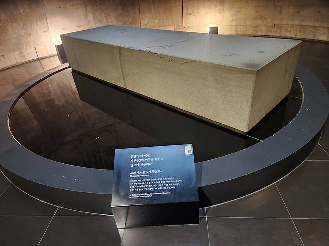 | ▲ 이름을 짓지 못한 제주4·3백비. 분단을 넘어 통일의 그날, 제주4·3의 진정한 이름을 새길 수 있을 것이다. |
