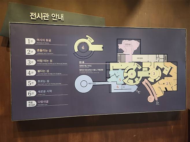 기념관은 시간의 흐름에 따라 전시하고 실체적 진실을 이해하는 데 도움을 주었다. 1부에서 5부까지 제주4·3의 원인, 전개과정, 결과, 진상조사 단계까지를 포함하여 교육현장으로 꾸며놓았다. 참담했던 역사가 이 땅에 다시는 되풀이되어서는 안 된다는 굳은 의지를 담고 있다. 전시실에 누워있는 제주4·3 백비(白碑)가 인상 깊다.