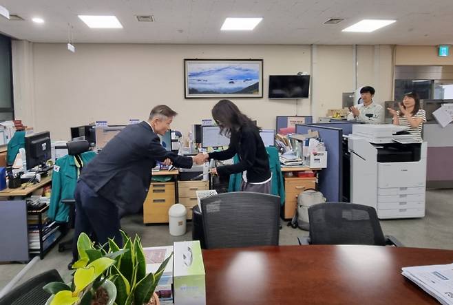 올해 3분기 '킹왕짱' 직원은 8표를 얻어 80점을 획득한 윤지민 주무관이 선정됐다. 세무과 관계자는 "전년부터 시행한 '킹왕짱' 선발 제도의 정착으로 서로 격려하고 돕는 따뜻한 직장 분위기 조성은 물론 청렴과 친절이 솔선수범의 문화로 확산되는 계기가 됐다"고 말했다.