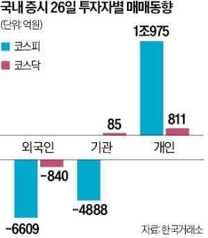 외국인과 기관투자가는 총 1조원이 넘는 순매도세를 기록하며 지수 하락을 주도했다.