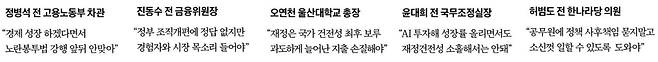 정 전 차관=이 부분만큼은 세게 말하고 싶어요. 정부가 “경제 성장하겠다”고 해놓고선 노란봉투법처럼 노사관계의 근간을 흔드는 제도를 밀어붙이는 건 정말 앞뒤가 안 맞는 일입니다. 이럴 거면 성장하자고 말을 하지 말든가. 경제단체가 줄기차게 반대하는 제도를 굳이 급하게 만드는 이유가 당최 무엇인지 알 수가 없어요.