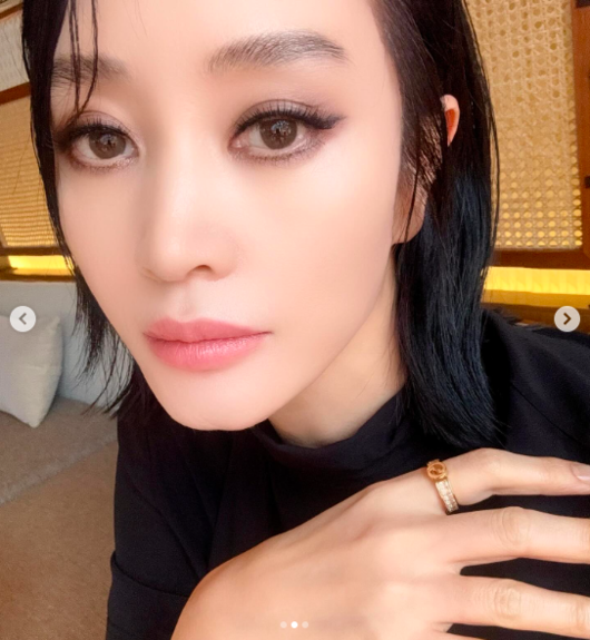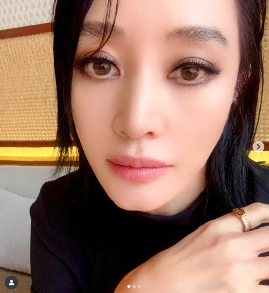 사진 속 김혜수는 초근접 셀카를 찍는 모습이 담겼다. 강렬한 스모키 메이크업으로 뚜렷한 이목구비를 자랑하며 카메라를 응시하고 있으며, 독보적인 분위기를 자아냈다.