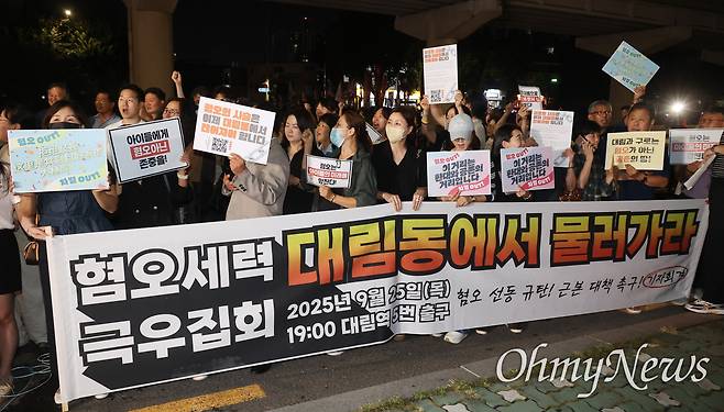 우씨와 만난 이곳에선 전날 "차이나 아웃"을 외치는 혐중 집회가 열렸다. 이재명 대통령이 이러한 집회를 "깽판"이라고 지적하며 대책을 촉구한 뒤 명동 일대에서 집회가 제한되자 극우단체는 중국 동포 등이 밀집해 거주하는 대림역 인근으로 자리를 옮겼다. 이들 집회의 행진 경로 300m 안에 초·중·고교 9곳이 몰려 있다. 이 학교들 중엔 80% 이상이 중국 이주 배경 학생들로 채워진 곳도 있다.