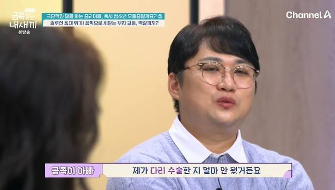 스튜디오에 출연한 금쪽이 아빠는 달라진 점에 관해 "웃음이 생겼다. 전 최선을 다했는데, 금쪽이가 말대꾸한다"라고 토로했다.