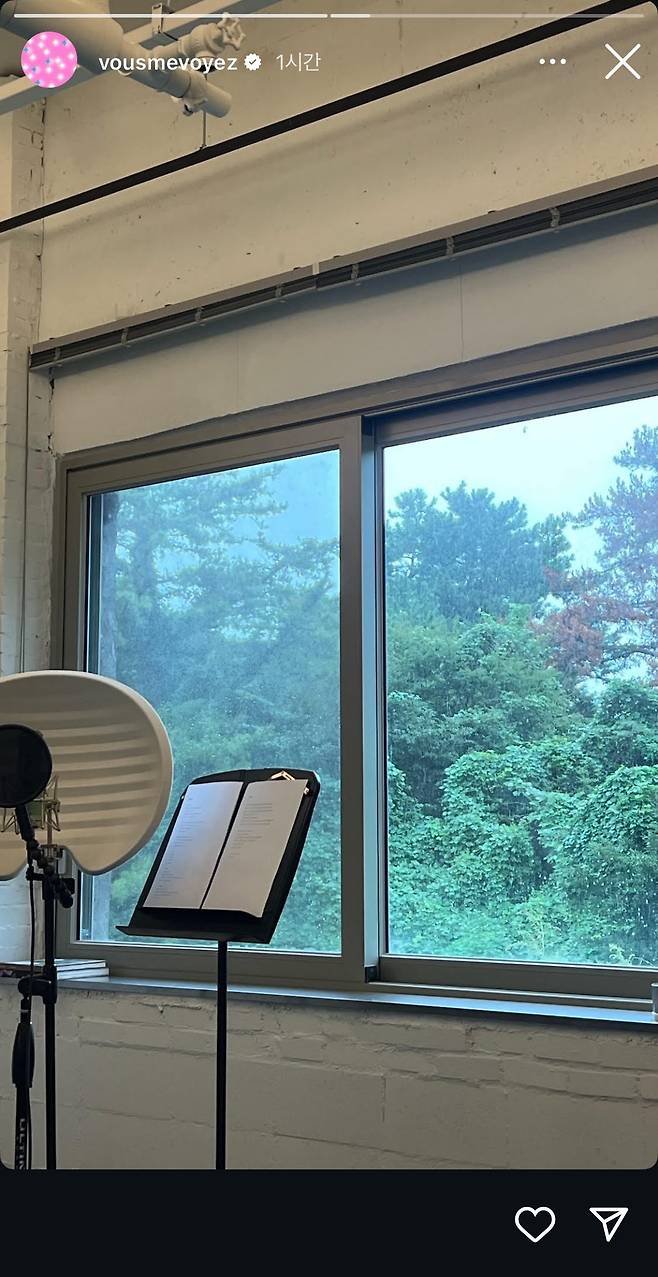 크리스탈은 26일 SNS에 의문의 사진을 올렸다. 녹음실로 추정되는 공간에는 마이크와 노래 가사가 적힌 종이가 놓여 있었다.