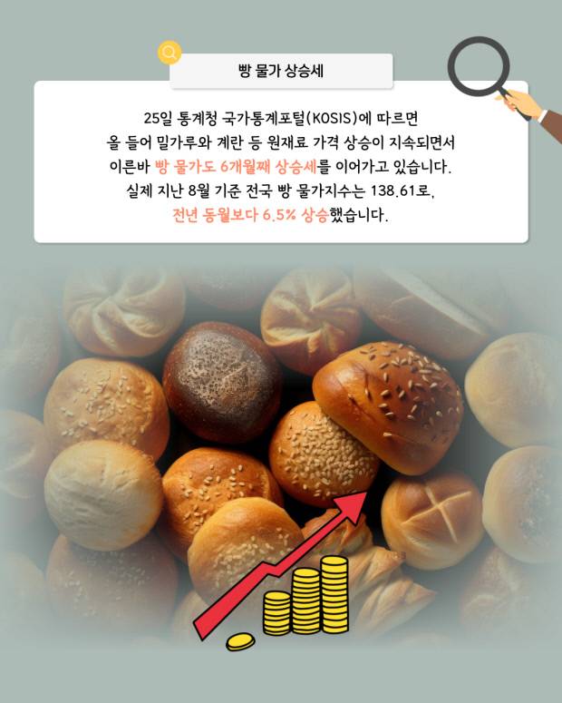 25일 통계청 국가통계포털(KOSIS)에 따르면, 올 들어 밀가루와 계란 등 원재료 가격이 지속적으로 오르면서 이른바 빵값도 6개월째 상승세를 이어가고 있습니다.