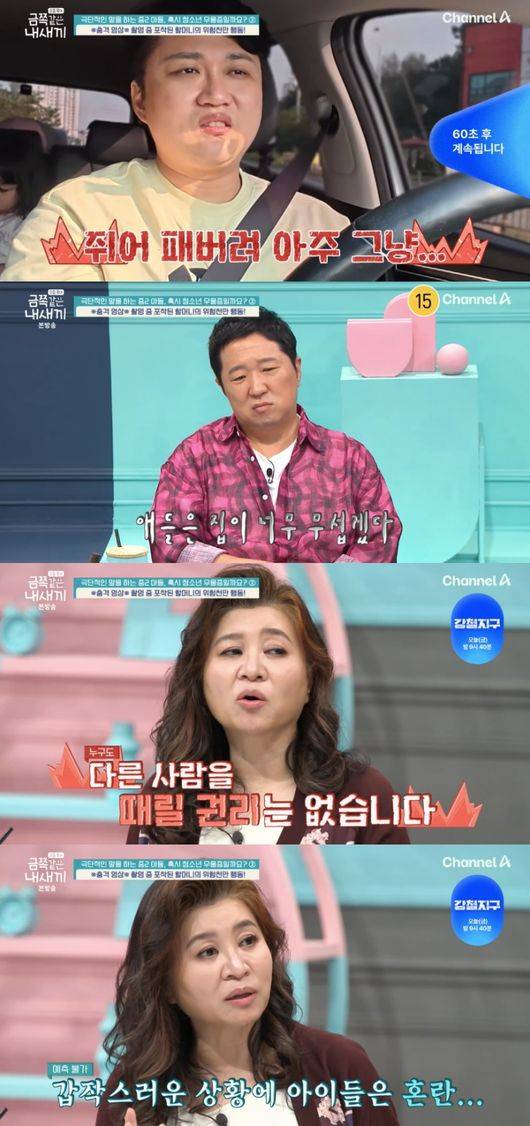 반면 아빠는 그런 할머니를 말리기는 커녕 “엄마, 쥐어 패버려 아주 그냥”이라며 동조해 충격을 더했다. 장영란은 “말리는 줄 알았더니. 애들이 뭘 잘못했냐”라고 했고, 정형돈도 “애들이 집에 있는 게 너무 무섭겠다”라고 말했다.