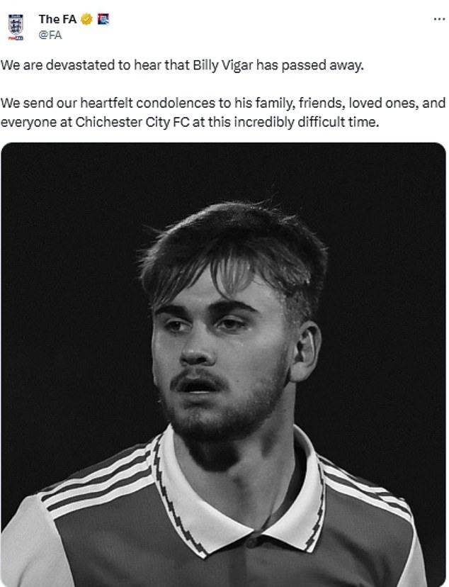 세미프로 리그 소속인 치체스터 시티는 공식 채널을 통해 "구단은 빌리 비가르의 부고를 깊은 슬픔 속에 확인하게 됐다. 편히 쉬기를. 치체스터 시티 구단 모든 구성원의 마음속에 영원히 남을 것"이라고 애도했다.