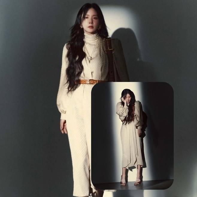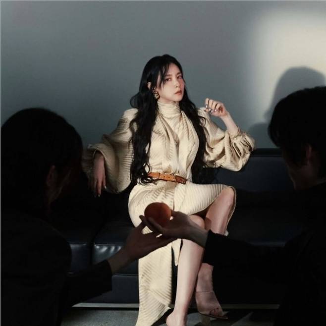 핵심은 과감하게 잘라낸 앞머리와 자연스럽게 이어진 블랙 붙임머리였다. 얼굴을 감싸듯 내려오는 긴 앞머리는 신비로운 분위기를 자아냈고, 절제된 표정 속에서도 고혹적인 눈빛이 빛을 발했다.