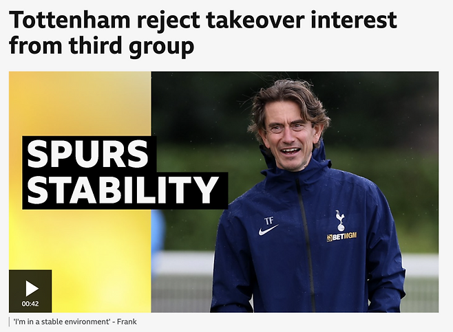 그러나 토트넘 지분 87%를 보유한 에닉 그룹은 즉각 성명을 내고 이를 거부했다. 성명문에는 “토트넘은 매각 대상이 아니며, 어떠한 지분 매각도 고려하지 않는다”는 단호한 입장이 담겼다.