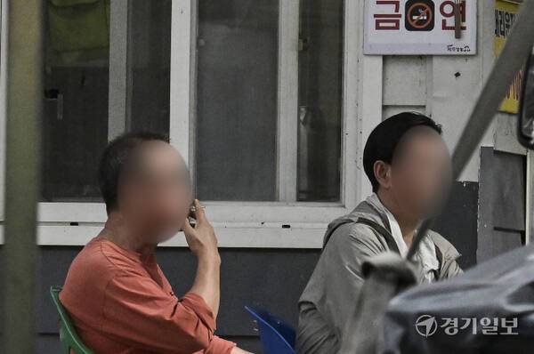 27일 오전 10시 17분께 경기 양주시 장흥면의 한 찜질방 내부에서 가스 폭발 사고가 발생해 이용객, 직원 등 중경상자 28명 및 72명이 대피하는 소동이 벌어졌다. 사진은 이날 오후 찜질방 관계자가 가스폭발 사고 현장에서 흡연을 하고 있는 모습.