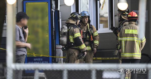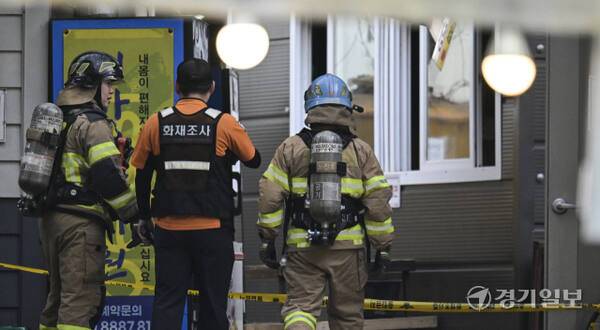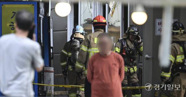 27일 오전 10시 17분께 경기 양주시 장흥면의 한 찜질방 내부에서 가스 폭발 사고가 발생해 이용객, 직원 등 중경상자 28명 발생 및 72명이 대피하는 소동이 벌어졌다. 사진은 소방관계자가 화재현장을 둘러보고 있다.