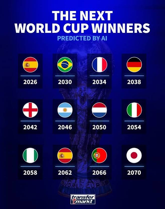 독일 이적시장 전문사이트 '트랜스퍼마르크트'는 26일(한국시간) "이러한 인공지능(AI) 예측에 대해 어떻게 생각하는가?"라며 한 장의 사진을 게시했다.