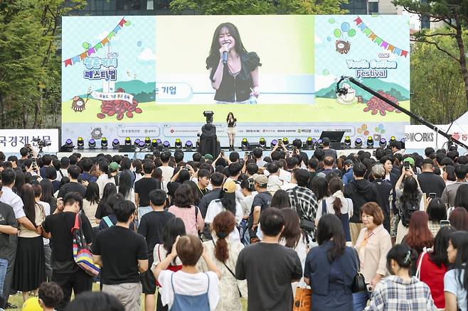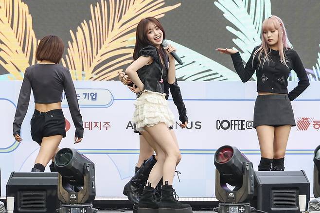 27일 오후 서울 잠실 롯데월드타워 앞 잔디광장에서 열린 '2025 청춘, 커피페스티벌'에 아티스트 '츄(CHUU)'가 등장하자 현장은 순식간에 환호로 뒤덮였다.