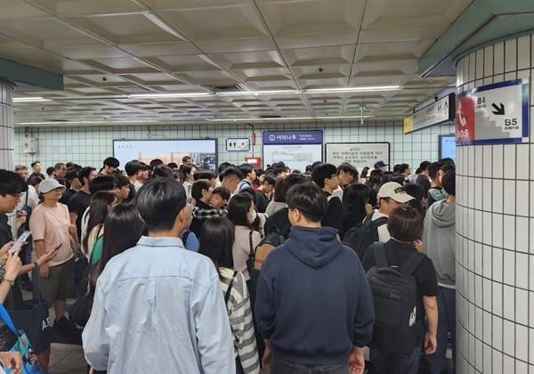 올해 축제에는 100만명이 모일 것으로 예상되는 가운데, 불꽃쇼 약 2시간 전인 이날 오후 5시께 여의나루역은 이미 시민들로 가득 찼다.