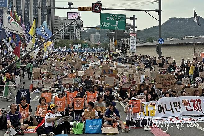 광화문을 중심으로 동십자각과 서십자각터 사이를 가득 메운 이들은 이날 집회에서 ① 기후정의에 입각한 온실가스 감축 목표 및 전환 계획 수립 ② 탈핵·탈화석 연료 및 공공재생에너지 확대 ③ 성장과 대기업을 위한 반도체·AI산업 육성 재검토 및 생태계 파괴 사업 중단 ④ 모든 생명의 존엄과 기본권 보장 및 사회 공공성 강화 ⑤ 농업·농민의 지속가능성 보장 및 먹거리 기본권 수립 ⑥ 전쟁·학살 종식과 방위산업 육성 및 무기 수출 중단을 요구했다.