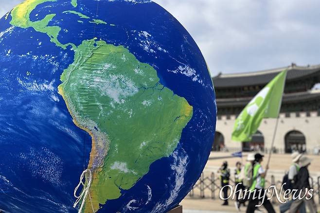 | ▲ 지구를 본딴 조형물이 광화문 앞에 놓여 있다. |