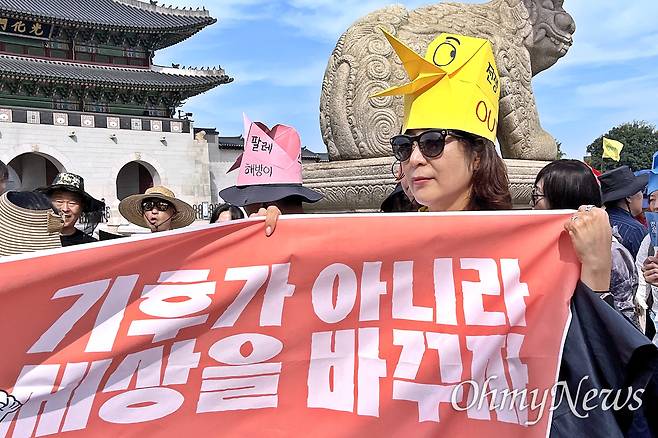 이태원 참사 희생자 고 이상은씨의 이모 강민하씨는 "유족들 사이에서 재난참사가 기후위기와 떨어져 있지 않다는 것을 알리자는 이야기나 나왔다"라며 "이런 집회에 나오면 우리 애들 생각도 나고 참사에 관심을 가져주는 이들이 많이 힘이 난다"라고 말했다.