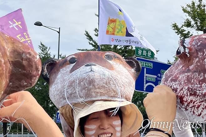 | ▲ 927기후정의행진 집회가 27일 오후 서울 종로구 광화문광장 일대에서 열렸다. 수달 분장을 한 참석자들. |