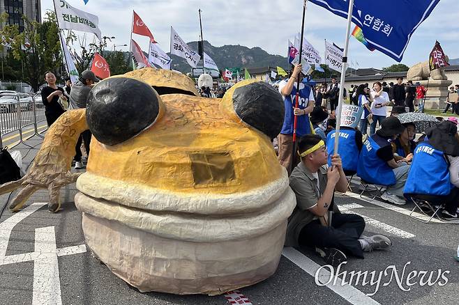 | ▲ 광화문 앞을 메운 집회 참석자들과 두꺼비 조형물. |