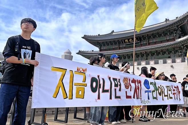 인권동아리 소속 동료들과 현장을 찾은 대학생 안나경씨는 "제가 사는 동네에서 반지하 침수 사건이 벌어지며 기후정의에 대해 인식하게 됐다"며 "사람의 목숨은 기후와 실제로 밀접하게 연관돼 있다"라고 짚었다. 이어 "영화 <기생충>에도 나오듯 폭우가 쏟아지면 어떤 사람은 '내일은 상쾌하겠지'라고 생각하는 반면 어떤 이들은 생존을 위해 그 물을 퍼내야 한다"라며 "기후정의엔 그러한 불평등을 해결하는 것이 포함돼 있다"라고 덧붙였다.
