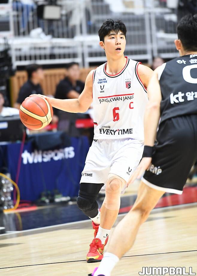 이날 경기 끝까지 승부를 알 수 없는 접전이었다. 정관장은 1쿼터에 빠른 공수 전환을 통해 외곽슛으로 경기를 풀어갔다. 더불어 볼을 잡기 전부터 가운데로 좁히는 끈적한 수비를 보이며 전반전 KT의 외곽을 완전히 봉쇄했다. 유도훈 감독이 말하는 ‘볼 없는 농구’가 보인 순간이다.