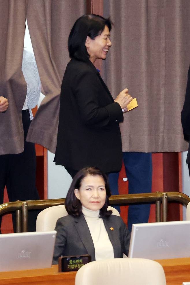 | ▲ 더불어민주당 소속 최민희 국회 과학기술정보방송통신위원장이 27일 서울 여의도 국회에서 열린 본회의에서 방송미디어통신위원회의 설치 및 운영에 관한 법률안에 대한 무제한토론 종결 동의의 건에 대한 투표를 하고 나와 활짝 웃고 있다. |
