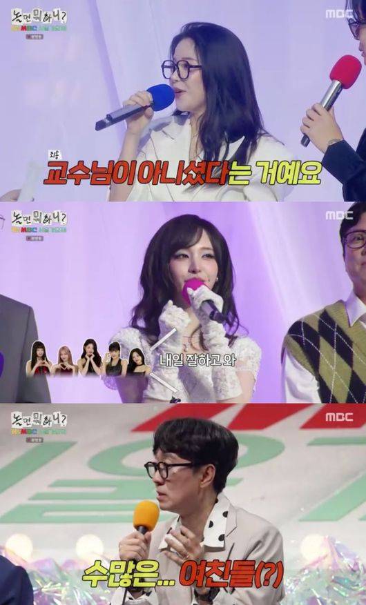 하하는 솔라에게 “(윤도현 씨가) 본인 학교 교수님 아니냐”라고 물었지만, 윤도현은 “제가 솔라 씨 학교 교수님이었다고 하는데, 전 교수를 해본 적이 없다”라고 해명했다. 솔라 역시 “아까 대기실에서 그 얘기를 한참 나눴는데, 교수님이 아니었다는 것”이라며 당황해했다.