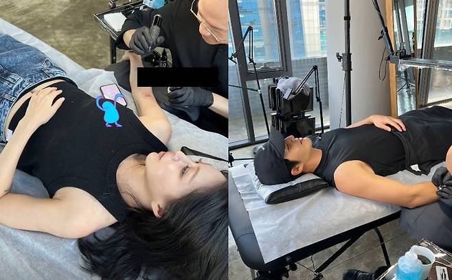 공개된 사진엔 커플 타투 시술을 받고 있는 한예슬 부부의 모습이 담겼다.