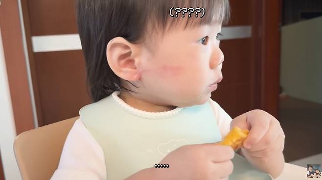 그때 이은형은 현조 군의 얼굴을 클로즈업, 빨갛게 부어 오른 볼에 속상함을 전했다. 혼자 놀다가 상처가 났다고.