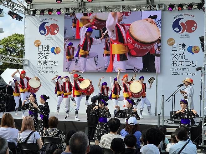 행사장엔 다양한 체험 부스도 차려졌다. 주일한국대사관은 한글을 활용한 키링과 파우치 만들기 등을 준비했다. 주일한국문화원은 한복 입기, 페이스 페인팅 등으로 분위기를 달궜다. 관람객들은 치즈 핫도그, 김밥, 부침개, 떡볶이, 냉면, 팥빙수 등 다양한 한식도 즐겼다. 박영혜 주일한국문화원 원장은 “이번 축제로 풀뿌리 수준의 깊은 교류가 지속적으로 이뤄져 양국이 경제·문화 등 다양한 분야에서 보다 나은 관계를 구축하는 데 밑거름이 되기를 바란다”고 말했다.