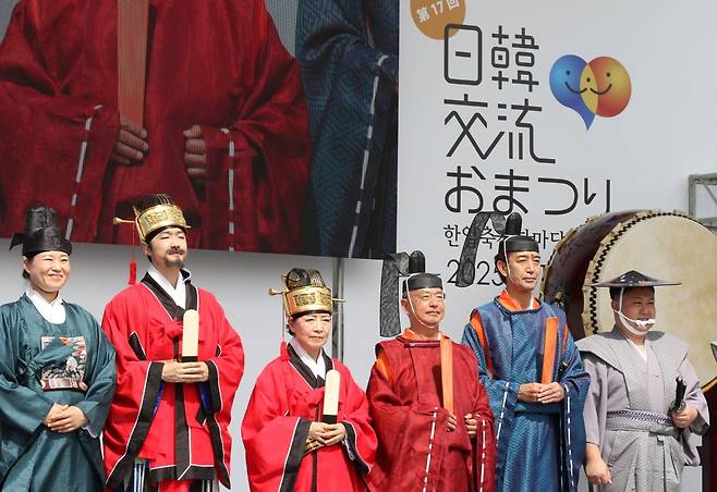 올해 개회식에서는 한·일 우호를 상징하는 외교 사절단인 조선통신사의 ‘친서 전달식’이 진행됐다. 전달식에는 2001년 도쿄 신오쿠보역에서 선로에 떨어진 일본인을 구하려다 숨진 이수현 씨 모친 신윤찬 씨가 참여해 정사(正使·사신의 우두머리) 역할을 맡았다. 조선통신사는 일본 에도 막부 때인 1607~1811년 조선에서 일본으로 12차례 파견된 외교 사절단이다. 올해는 4월 서울 경희궁을 시작으로 부산, 오사카 등에서 재현 행사를 열었고, 오사카·간사이 엑스포 행사장에서도 행렬을 선보였다.