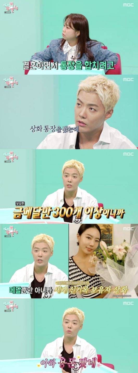 강남은 “결혼할 때 통장을 합친다. 상화 씨 통장을 봤는데 저의 5배였다. 금메달만 300개 이상이니까. 아직도 신기록을 가지고 있으니까. 내 통장을 보여줬는데 ‘오빠 괜찮아. 그냥 용돈 해’ 하더라”라고 말했다.